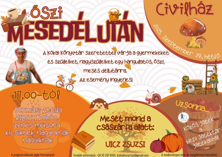 Őszi mesedélután + Google Naptárba mentés + iCal / Outlook exportálás Az esemény véget ért. Dátum 2025 Sze 29 Lejárt! Idő 17:00 - 19:00 Esemény megosztása